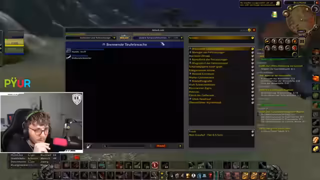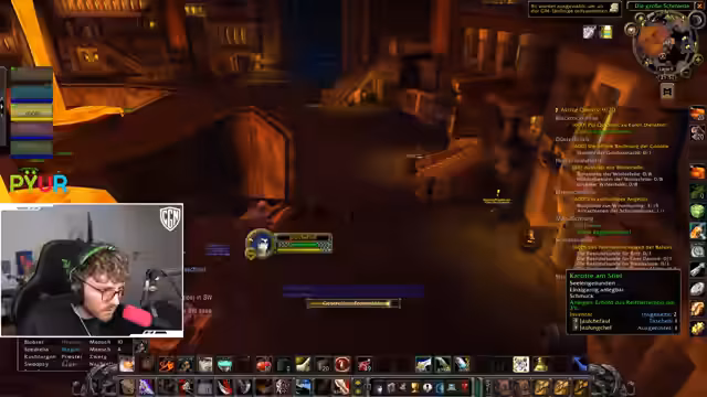 03:17:01Es wurde intensiv versucht, eine neue Gruppe für weitere Dungeons wie die Blackrock Depths (BRD) zu organisieren, wobei besonders die Rollenverteilung zwischen Schaden-Dealern, Heilern und Tanks diskutiert wurde. Ein Teilnehmer fragte an, ob man für bestimmte Läufe wie Strattholm oder Scholomance noch einen Platz frei hätte, wobei geklärt wurde, dass für diese Dungeons meist ein Magier wegen des Flächenschadens notwendig ist. Man einigte sich schließlich darauf, Arena-Runs in BRD durchzuführen, um gezielt Ausrüstung für Spieler wie Chessy zu farmen, da die Gruppe noch unvollständig war und Heiler fehlten.