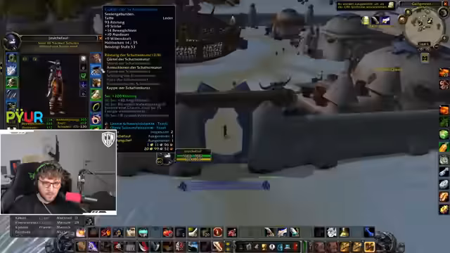 00:32:24Während des Runs werden die Loot-Ziele der Spieler offen gelegt. Slay benötigt Schuhe von einem Extra-Boss, und Streamer hat dringenden Bedarf an einem Upgrade für seinen Helm und einen Umhang aus Stratholme. Die Group kann auch wertvolle Items wie die Krollklinge und diverse Ausrüstung für andere Spieler erwirtschaften. Es wird sogar über das Würfeln für spezielle Items wie den Umhang diskutiert, was die Unsicherheit über den Ausgang des Runs unterstreicht.