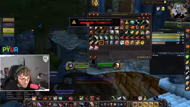 03:42:18Die Streamer diskutieren über das Leveln im Spiel und farmen Gegenstände, insbesondere Rieseneier. Chessy berichtet von seiner Farming-Session für Eier in Tanaris, während andere über die Schwierigkeiten bei der Jagd nach diesen Gegenständen und die Drop-Chancen sprechen. Der Fokus liegt auf der Suche nach seltenen Gegenständen und den Hindernissen, die dabei auftreten, wie z. B. schlechte Spawn-Raten bei bestimmten Mobs oder technische Ruckler.
