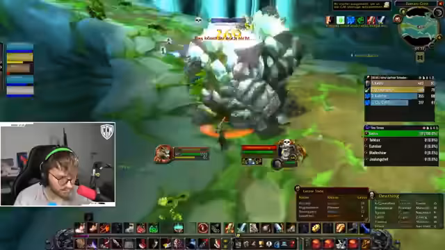 08:27:44Während des intensiven Kampfes ab 30464 kommt es zu kritischen Situationen. Der Streamer wird 'knocked' und setzt verzweifelt Dummy-Fallen ('schöner Dummy') ein, um Aggro zu kontrollieren. Bei 30494 wird der erfolgreiche Bosskill gefeiert, doch der Streamer zittert vor Nervosität – er überlebte nur mit 3% Lebenspunkten. Es folgt eine detaillierte Analyse: Ein unerwarteter Triple-Hit hätte ihn fast getötet, doch der rechtzeitige Vanish rettete ihn. Besonders kritisch war die unerwartete Aggro-Übernahme durch einen anderen Spieler ('TKX'), dessen Tod vermieden wurde.