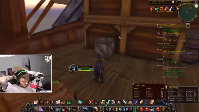 04:12:17Während des Spiels kämpfen die Spieler ums Überleben, mit kritischen Lebenspunkten und beinahe-Todeserfahrungen. Ein Spieler erleidet einen Disconnect, während ein anderer mit nur 1% Lebenspunkten knapp überlebt. Die Gruppe diskutiert Rettungsmaßnahmen und die Verwendung von Heiltränken. Spannung entsteht, als ein beinahe-Verlust durch rechtzeitige Heilung vermieden wird, was zu emotionalen Reaktionen und der Bemerkung führt, dass das Universum sie nach Maraudon führen wolle.