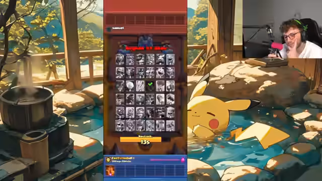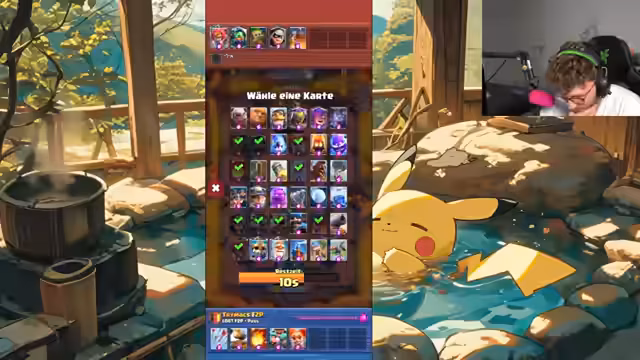 00:04:48Während des Spiels analysiert der Streamer ständig die aktuelle Meta, insbesondere die Beliebtheit und Stärke des „Ofen“-Decks, das seiner Meinung nach fast jeder Gegner spielt. Er beschreibt die frustrierende Erfahrung, gegen Decks wie „Evo-Skellett“ oder „Spam“-Decks zu verlieren, die er als unfair und nervig empfindet. Er reflektiert über seine eigenen Spielzüge und macht sich häufig selbst Vorwürfe für schlechte Entscheidungen, während er gleichzeitig die strategischen Züge der Gegner kritisch kommentiert.