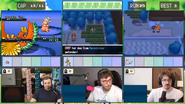 07:55:14Zu Beginn des Streamsabschnitts erlebt das Trio eine Reihe von Rückschlägen bei ihrem Pokémon-Run. Chef Strobel verpasst die Fänge von komplizierten Pokémon wie Solid Legendary Dramboke und Giftschleim, was als herber Verlust angesehen wird. Die Gruppe diskutiert über effektive Items und Attacken, wobei Chef Strobel anmerkt, dass sein Versuch, den Run zu retten, gescheitert ist und die Situation in eine Falle zu münden drohte.
