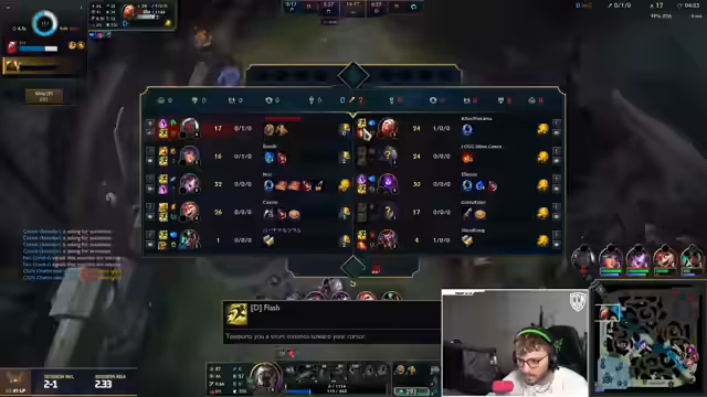 13:49:13Der Streamer stößt auf einen Bug, bei dem sein Flash-Spell auf der Taste D erscheint, anstatt auf F. Dies führt zu Verwirrung und einer Diskussion im Chat über die optimale Belegung des Flash-Spells. Gleichzeitig kämpft er im Spiel gegen einen mutmaßlich angetrunkenen Yasuo. Das Team hat Schwierigkeiten, die Bot-Lane zu kontrollieren, was den Streamer frustriert, da er alleine tragen muss.