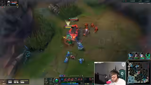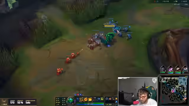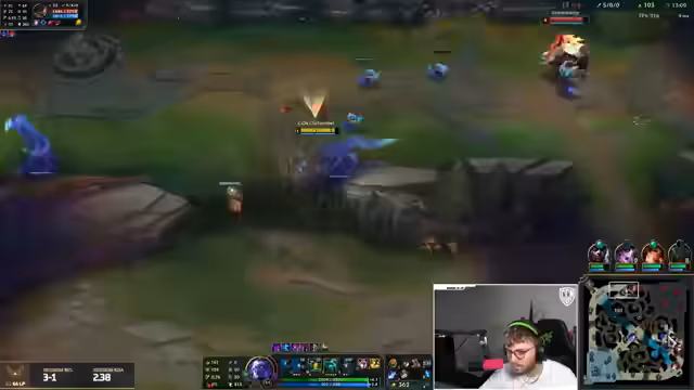 05:50:15Die Gegner nutzen eine unkonventionelle Cheese-Taktik, indem sie direkt zwei Kills auf der Bot-Lane holen. Der Streamer ist zu Beginn auf seiner Top-Lane im Nachteil, da sein Jungle-Setup durch den gegnerischen Shaco ebenfalls gestört wird. Die Bot-Lane dominiert hingegen und sichert sich einen Vorteil, der Hoffnung auf ein gewinnbares Spiel gibt. Der Streamer bemerkt, dass sein Gegner, der Darius, extrem viel Farm sammelt, was ihn ausgleicht und es ihm unmöglich macht, ihn vom Farmen abzuhalten, selbst wenn er versucht, die Wave zu kontrollieren.