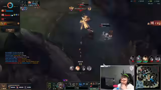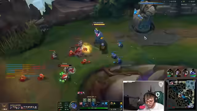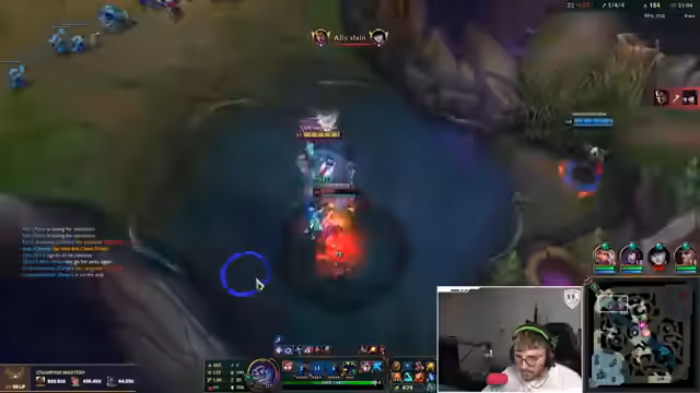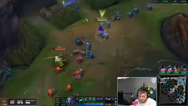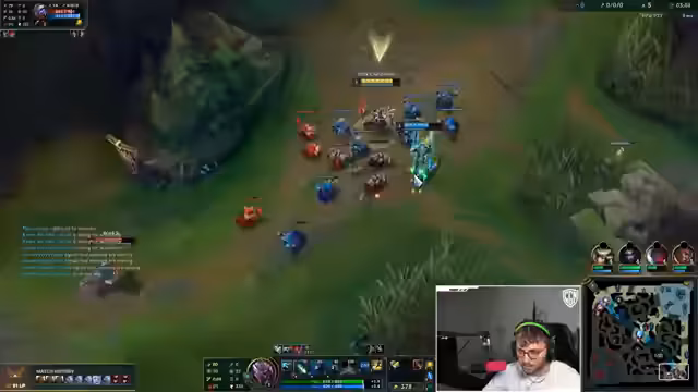 13:32:02Der Streamer beschreibt einen chaotischen und äußerst intensiven Teamkampf mit hohem emotionalem Engagement. Er analysiert seine eigenen Fehler in der Positionierung, speziell in Bezug auf sein Ultimating auf einen gegnerischen Champion namens Vega. Es kommt zu Fehlern im Teamplay, als Kog'Maw keine Aktion im Kampf zeigt, und die Kommunikation über Pings verläuft suboptimal, was zu einem erarbeiteten, aber knappen Sieg führt.