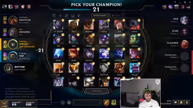 11:40:04Ein neues Game beginnt mit der Wahl von Orianna und der Bitte um einen 'Fun-Check'. Der Streamer ist hochmotiviert und plant eine 'brutale Kombi' mit Chef Strobel, um das Spiel alleine zu gewinnen. Er äußert sich hochgerüstet über die Zusammenarbeit und erwähnt, dass er bei 'Craft Detect' ist. Nach der Wahl von Pantheon mit Ignite warnt er vor dem Gegner. Das Spiel startet offiziell, und die Minions erscheinen.