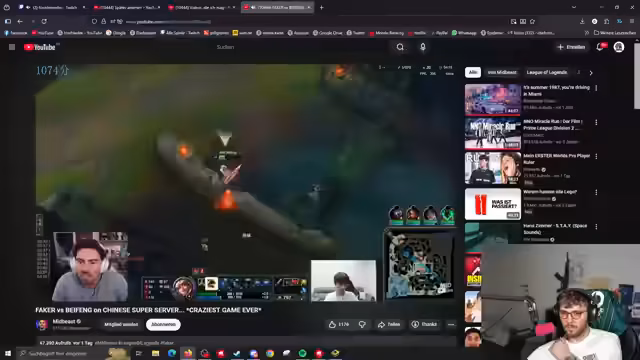 06:10:37Der Streamer berichtet von einem Flash-Einsatz, der einen tödlichen Hook verhindert hat, und erwähnt die Unterschätzung von Dario sowie die Abwesenheit eines Freundes (Niki/Djunger-Freund). Ein ungewöhnliches Gegner-Verhalten wird bemerkt, als ein Karapathor (offenbar ein Champions-Name) unerwartet auftaucht. Dies führt zu Verwirrung über die Gegnerstrategie. Später wird über die Zonen-Strategie diskutiert, wobei der Streamer betont, dass sie von unten aus spielen müssen, um einen Vorteil zu erzielen.