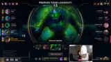 05:59:41Ein potenzieller Teamfight gegen den gegnerischen Darius wird geplant. Der Streamer möchte, dass der Support einen CC legt, sodass er diesen mit seiner Ulti ins Team ziehen kann. Allerdings erkennt er, dass der Gegner Ghost nutzt und die Taktik dadurch weniger effektiv wird. Der gegnerische Smolder hat sich in der Side-Lane extrem stark gefarmt und besitzt 124 Stacks, was eine ständige Bedrohung darstellt. Der Streamer sieht die letzte Chance, das Spiel noch zu drehen, indem er versucht, Smolder am Heralden zu stoppen, was jedoch durch eine gegnerische Box erschwert wird.