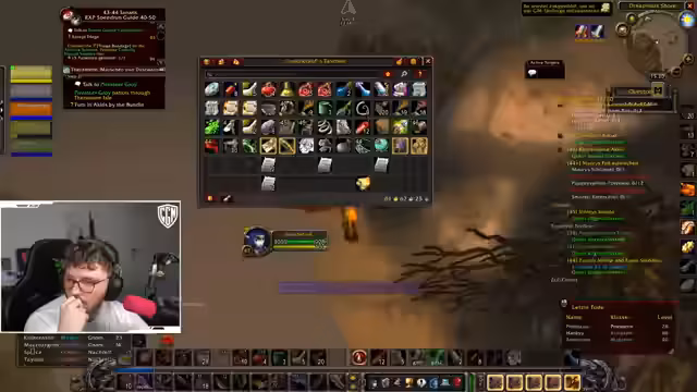 00:14:51Der Streamer beschäftigt sich mit der Herstellung von Tempotränken für unter Wasser, benötigt jedoch Schwarzmaulöl und -fisch. Nach erfolgreicher Lockpicking-Übung und Erlangung der Fähigkeit, stabilere Kisten zu öffnen, plant er, das Gebiet zu verlassen. Es gibt technische Probleme, darunter ein verschwommener Bildschirm, eine Portalverbindung nach Kador und der umständliche Rückweg mittels Ruhestein.