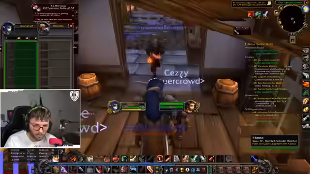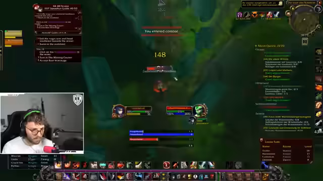 03:47:37Der Streamer und sein Begleiter sind im Gebiet Tanaris aktiv und konzentrieren sich auf das Questen. Sie kämpfen gegen mehrere NPCs und auf der Suche nach speziellen Quest-gegenständen. Es kommt zu spannungsgeladenen Situationen, in denen sie mehrere Gegner gleichzeitig bekämpfen müssen. Der Streamer kommentiert sein Inventar und stellt fest, dass er viele Gegenstände mit sich führt, was das Farmen erschwert. Er berichtet auch über eine persönliche Strafe, die ihm im Spiel auferlegt wurde, und erwähnt, dass er wegen einer Krankheit keine Reittiere benutzen durfte.