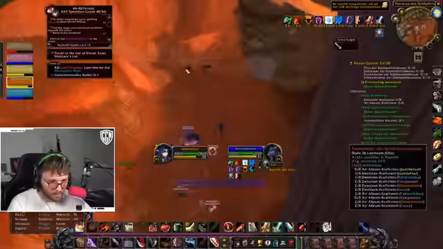 00:18:02Es wird die Ankündigung einer fünfköpfigen Gruppe gemacht, um die Booty-Bay-Schiffs-Quests zu absolvieren. Die wichtigen Vorquests, darunter 'Blutsegel-Bukanierer' und 'Schnupftabak-Farm', werden diskutiert. Der Streamer erklärt, dass es wichtig ist, die Mobs nicht hinten auf dem Schiff nach oben zu ziehen, um nicht das gesamte Schiff anzuziehen und den Loot fair zu verteilen.
