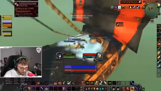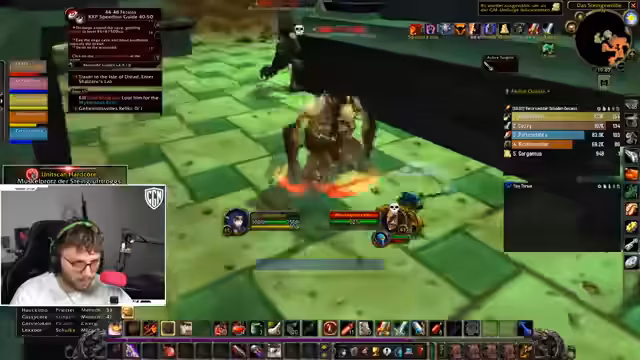 01:29:10Die Gruppe wechselt zum nächsten Schiff, um weitere Questgegenstände zu farmen. Es werden Probleme mit dem Heiler angesprochen, der möglicherweise nicht in Reichweite ist. Es wird über das Spawnverhalten der Mobs und die Taktik beim Pullen gesprochen. Der Streamer erwähnt einen selbstgemachten Solo-Dungeonlauf in Blackrock Depths und erläutert dabei einen Fehler mit der Linie des Sichtfelds (LOS), der zum Scheitern führte.