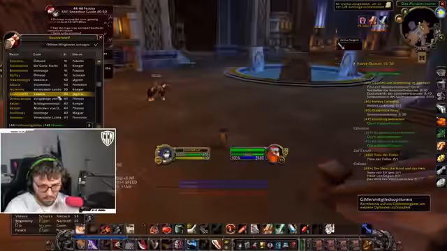 09:29:16Die Gruppe plant nun, den Dungeon Maraudon zu besuchen. Der Streamer zeigt sein tiefes Wissen über die Questreihen und Mechaniken. Es wird über die Notwendigkeit des 'Maraudon-Hammers' für einen extra Boss gesprochen, den man im Hinterlande holen muss. Die Gruppe wird geteilt, während einige die Hammer-Quest machen sollen, andere im Dungeon weiterleveln.