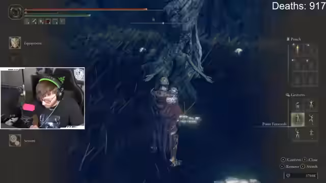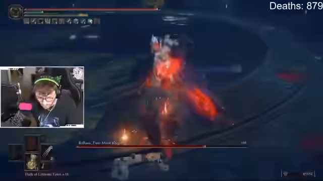 00:03:57Nachdem er einige Gegner besiegt und neue Waffen wie einen Hammer gefunden hat, stößt der Streamer auf einen neuen, als extrem nervig empfundenen Bossgegner. Dieser Boss nutzt unvorhersehbare Angriffsmuster, kombiniert schwere und schnelle Attacken und treibt den Streamer zur Verzweiflung, was zu mehreren Toden und Wutausbrüchen führt.