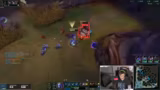 04:52:57Nach dem Abbruch im Elden Ring-Stream wird spontan zu League of Legends gewechselt, da der geplante Co-Stream mit "Max" nicht stattfindet. Der Streamer spielt nun als "ADC" auf der Bot-Lane, äußert jedoch massive Frustration über das aktuelle Matchup gegen einen Rumble und fühlt sich im Spiel überfordert und unterlegen.
