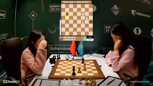 04:50:23Die Spannung im Turnier hält an, insbesondere bei den Partien, die noch laufen. Kommentatoren vermuten, dass die Partie von Tang Dung Ri am längsten dauern wird, da sie versucht, mit drei Bauern gegen zwei zu gewinnen. Jeder Punkt ist in diesem Turnier extrem wertvoll und die Kämpfe sind intensiv. Es sind noch drei Partien vor dem Ende, was die Spannung bis zuletzt aufrechterhält.