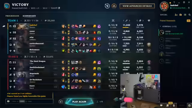 08:08:22Im späteren Verlauf des Spiels diskutiert der Streamer taktische Züge für das Late Game. Er plant einen Drachen-Baron-Rush, wobei er sich der fehlenden Vision bewusst ist und stattdessen defensiv spielen will. Er überlegt, ob er seine Kritik am Gameplay-Verhalten der Mitspieler tone down sollte, was jedoch schwerfällt.