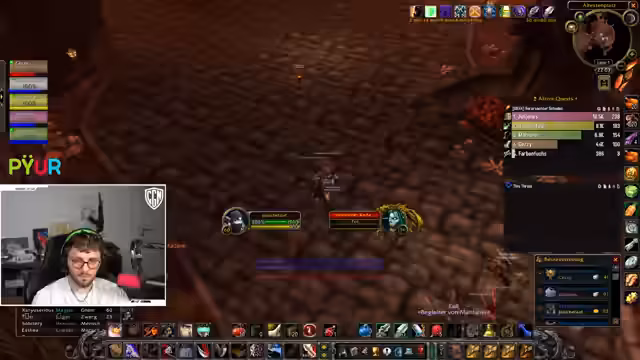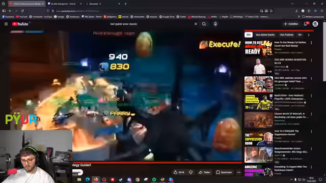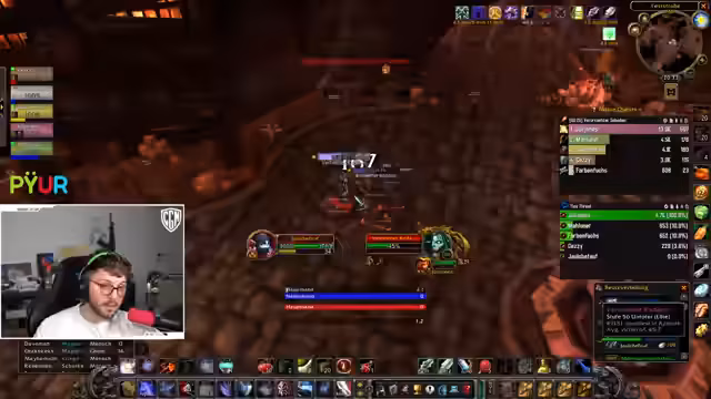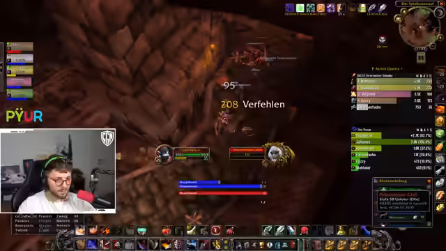 04:59:12Der Streamer, ein Hunter, hat nur 4% Hit und benötigt 9%. Er ist erst seit einer Woche auf Level 60 und hat daher schlechtere Ausrüstung. Er ist verzweifelt, da er keine gute Armbrust mit Hit-Cap findet und droht, allein durch den Dungeon zu rennen, wenn die Verzweiflung groß ist. Er sucht nach einem Trick, um das Problem zu umgehen, und gibt Mazat den Rat, ein Mauspad zu kaufen.