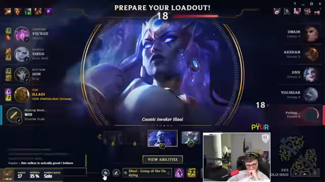 00:02:53Nach der Diskussion über die Patch Notes wird der Champion Illaoi als geplante Pick bekannt gegeben, die gegen Volibear gespielt werden soll. Dies führt zu ersten Unstimmigkeiten im Chat, als der Streamer einen ungewöhnlichen Soundeffekt im Stream bemerkt. Das erste Spielspiel beginnt sofort und stellt sich als schwieriges und frustrierendes Matchup heraus. Der Gegner auf der Toplane, der Yasuo spielt, wird als Counter-Pick und potenzielle "0-10" Bedrohung wahrgenommen. Die anfängliche Euphorie wechselt schnell zu Ärger, als technische Probleme und unfaires Spielverhalten des Gegners, der Ignite pickt, den Streamer tilt machen.