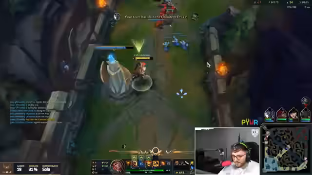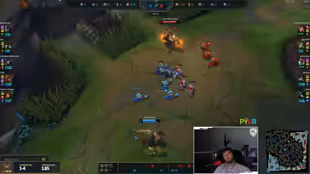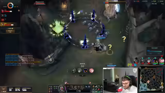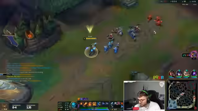 10:14:48Der Streamer zeigt sich zunehmend frustriert über negative Zuschauerkommentare und das eigene Team, das in mehreren aufeinanderfolgenden Spielen verliert. Er äußert seine Unzufriedenheit mit dem Streamen und denkt daran, League of Legends und Valorant endgültig zu beenden, da es ihm keinen Spaß mehr macht. Trotzdem versucht er das laufende Spiel zu retten, indem er drängt, den Darius zu fokussieren, bevor er zu stark wird, doch die Koordination bleibt aus.