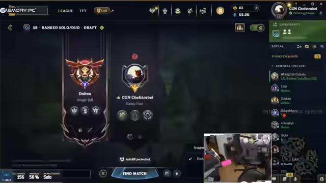 01:08:01Es wird sich auf weitere Spiele vorbereitet und mit Zuschauern interagiert. Es wird über den Zustand gesprochen und dass es kurzzeitig geistesabwesend war. Es wird sich mit Daitan verbunden und über das gestrige Treffen gesprochen. Es wird überlegt, ob eine Watchparty gemacht werden soll. Es wird überlegt, welchen Champion gespielt werden soll, entweder Kayn oder Elise. Es wird der Kayn begutachtet und verschiedene Skins ausprobiert. Es wird überlegt, ob Karma Top oder Support spielt. Es wird über die Lane und das Verhalten der Gegner gesprochen. Es wird über die Bedeutung von Team-Moves gesprochen. Es wird sich über die Ganks des Junglers beschwert. Es wird sich über die Spielweise der Gegner geärgert. Es wird über die eigenen Fähigkeiten gesprochen und dass Roar der Beste ist.