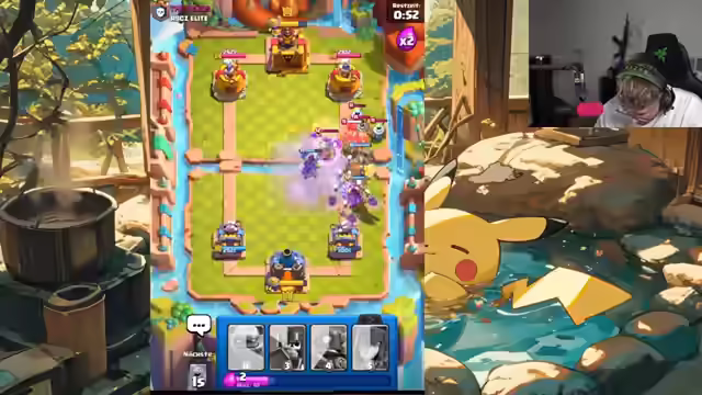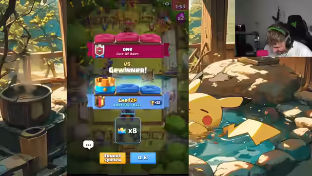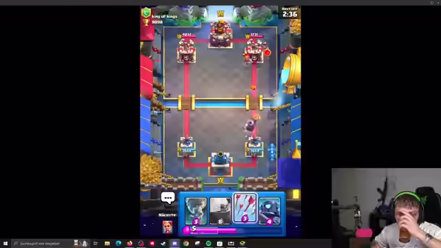 07:29:13Es werden die erhaltenen 300 Gems diskutiert, die potenziell für Grand Challenges genutzt werden könnten, um die Boss Banditin auf Level 14 zu bringen. Es wird beschlossen, das aktuelle Deck beizubehalten, bis es generft wird. Der Fokus liegt auf der strategischen Nutzung der Crackerin und Berserkerin, wobei der Einsatz von Pfeilen gegen die Crackerin betont wird. Trotz eines anfänglichen Freewins wird vor zu früher Euphorie gewarnt, da der Gegner einen Golem besitzt. Es wird die Bedeutung des richtigen Golem-Einsatzes betont, wobei eine Golem-Brücke empfohlen wird, um die gegnerischen Truppen zu binden. Es wird die Notwendigkeit diskutiert, die Boss-Party chargen zu lassen und Pfeile strategisch einzusetzen, um Druck auszuüben. Der Golem wird als Schlüsselkarte identifiziert, um Türme zu erobern, und der Elektrodecken wird zur Verteidigung eingesetzt. Trotz guter Ausgangslage wird die Schwierigkeit betont, gegen Gegner mit hohem Kartenlevel zu bestehen, was zu Frustration führt. Es wird die Frage aufgeworfen, wie die Gegner so hohe Kartenlevel erreichen konnten, was die Herausforderungen des Spiels verdeutlicht.