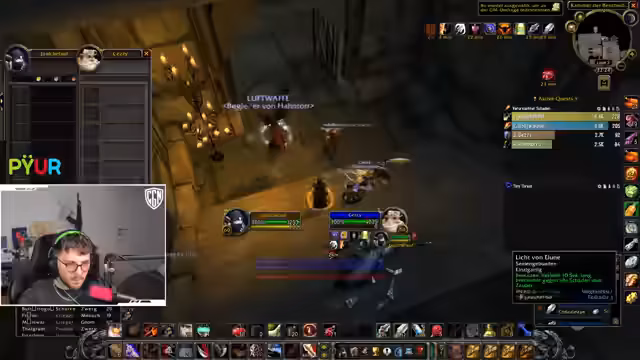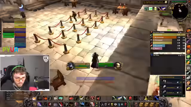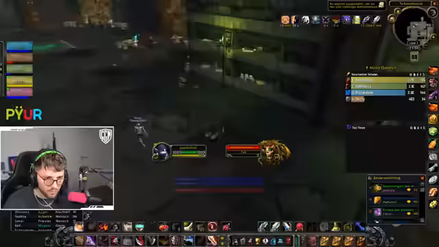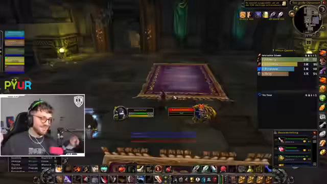 00:21:03Die Gruppe beginnt mit dem Raid in Scholomance. Es kommt zu Diskussionen über die Rollenverteilung und der Aggro-Management. Der Streamer und die Gruppe kämpfen gegen verschiedene Mobs und Bosse. Dabei werden auch technische Aspekte des Spiels, wie Add-ons zur Heilungsanzeige, besprochen und es kommt zu einigen kritischen Momenten während des Kampfes.