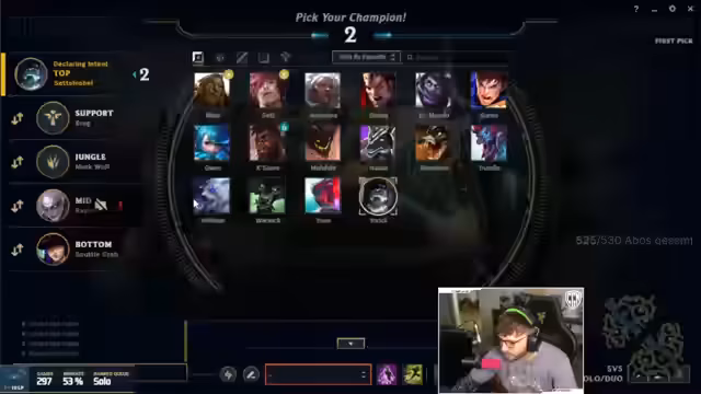 00:06:40Bei den Champion-Picks auf der Top-Lane überlegt sich der Streamer, Yorick oder Heimerdinger zu spielen. Er entscheidet sich jedoch gegen Yorick, da dieser vom Gegner gebannt wird. Stattdessen wählt er Mundo und plant, mit einem AP-Item-Build zu überraschen. Er analysiert sein Spiel und das des Gegners, kritisiert den fehlenden Jungle-Support und erklärt, dass er Yorick auf seinem Zweitaccount lernen möchte, um seine Champion-Palette zu erweitern und der wachsenden Anzahl von Campern in der Top-Lane entgegenzuwirken.