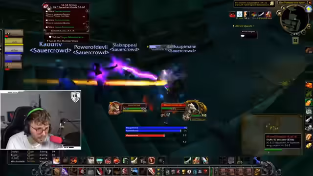 02:46:31Die Diskussion dreht sich um die Taktik für einen Boss, der einen Spieler mind controlt. Es wird eine klare Strategie erörtert: Der Spieler, der den Debuff erhält, muss sofort in eine Ecke laufen, um keine Teammitglieder zu gefährden und um sich selbst zu schützen. Die Gruppe hatte anscheinend schon Erfahrung mit dieser Mechanik und baut eine Distanz auf, um Verwirrung zu vermeiden. Der Streamer gibt auch Tipps zum Leveln, indem er erwähnt, dass das gemeinsame Questen mit einem Healer als sehr effektiv und chillig angesehen wird, was es ermöglicht, Mobs einfach anzugreifen.