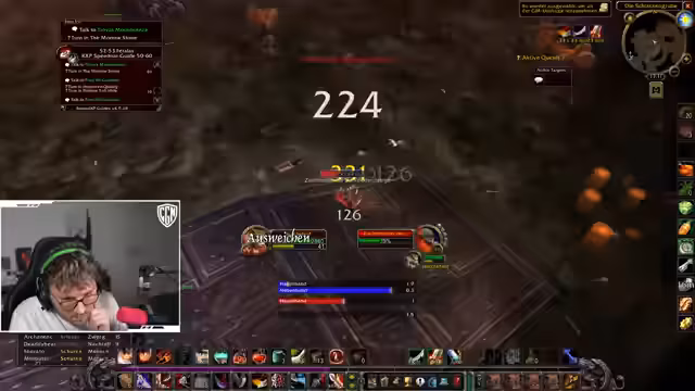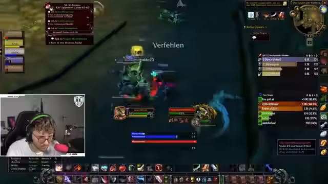 00:01:13Der Stream beginnt mit einer Absage des Hardcore-Modus in World of Warcraft. Der Streamer plant, die Level bis 60 zu erreichen und weiterhin an Dungeon Runs teilzunehmen, wobei sein Fokus auf einem 58er Tank liegt. Es besteht der Wunsch, einen Tempel-Run zu starten, jedoch ist die aktuelle Online-Situation der Mitspieler, insbesondere fehlende Damage-Dealer und Priester, eine erhebliche Hürde, die den Plan vorerst durchkreuzt. Ein kurzfristig gefundener Tank kündigt ebenfalls seinen Abgang an.