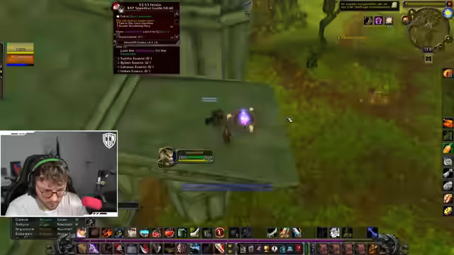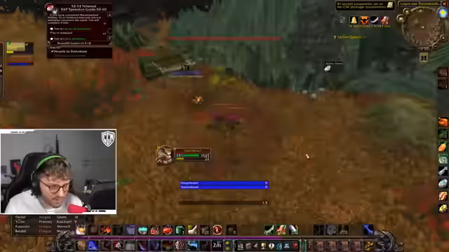 00:09:13Es wird über einen Bug berichtet, bei dem ein Spieler versehentlich PvP-geflaggt wurde, was zu einer unangekündigten PvP-Konfrontation führte. Die Konzentration verlagert sich darauf, den neutralen Ruf für die Holzschlundfeste in Winterspring zu farmen, der für den Zugang zum Tempel notwendig ist. Der Ruf wird derzeit als 'feindselig' eingestuft und muss dringend auf 'unfreundlich' verbessert werden. Der Streamer sammelt dazu Federn, um bei einem NPC in Gebirgspass einzuwechseln und den Ruf zu farmen.