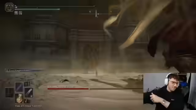 00:01:06Der Streamer beginnt mit einem humorvollen Einlass, in dem er vorgibt pleite zu sein. Unmittelbar danach konzentriert er sich auf den letzten Boss des Elden Ring DLCs. Er stürzt sich direkt in den Kampf und gibt bekannt, den Boss heute bezwingen zu wollen. Er erläutert, dass er Tränke bereit hat, aber sein Spielstil ungeduldig ist, was zu Fehlern führt. Nach mehreren versuchen ist er frustriert von der zweiten Phase des Bosskampfes, insbesondere von den Angriffsmustern und dem Schaden.