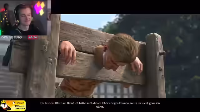 01:24:22Der Streamer beginnt, Mehlsäcke zur Speisekammer zu schleppen und fühlt sich dabei etwas verarscht. Er schwitzt und sorgt sich um seinen Muskelaufbau. Er wird ermahnt, sich nicht provozieren zu lassen und keine weiteren Sorgen zu verursachen. Der Streamer beteuert, ruhig zu sein, und wird aufgefordert, Dorftrottel zu ignorieren und sich an die Arbeit zu machen. Es kommt zu einer Rufverschlechterung. Der Streamer fragt, was gesagt wurde und deutet an, dass sich die Leute selbst angegriffen haben. Er wird ermahnt, sich zu beruhigen. Der Streamer wird beschuldigt, ein lügender Nichtsnutz zu sein, und es wird eine Entschuldigung verlangt. Der Streamer wird aufgefordert, zu gehen. Er gibt vorerst auf. Er muss nun mitmachen und fängt an, auf Säcke zu boxen. Er findet es unfair und fragt sich, warum die Gegner nicht umfallen. Er tritt in die Säcke und fragt, ob er die Gegner looten kann. Der Streamer wird als jemand bezeichnet, der wie ein Mädchen schlägt, was er zu vermeiden suchte. Er wird verhaftet und in den Pranger gesteckt.