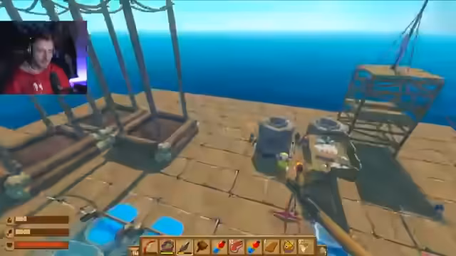 03:39:17Ein Ziel für das Spiel wird formuliert: ein richtiges Schiff mit Rumpf und Heck zu bauen. Die momentane Gefahr auf dem Floß wird thematisiert, bei der das Erschaffen von Feuer unter den Segeln als riskant, aber auch als 'no risk, no fun' bezeichnet wird. Gleichzeitig wird das Floß durch das aggressive Wildschwein Bruce, das Teile davon frisst, bedroht. Ein weiteres Problem stellt der Ausfall der Wasserräder dar, die nicht mehr vorankommen. Anschließend wird der Bau eines Bienenstocks ins Auge gefasst, wofür Bienengläser benötigt werden.