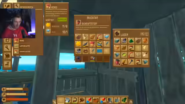 03:35:23Der Stream beginnt mit der Erkundung einer neuen Insel. Zunächst wird die Anordnung des Floßes optimiert, um eine bessere Aussicht zu gewährleisten, und eine leere Insel im Hintergrund gesichtet. Anschließend werden Ressourcen gesammelt, wie ein Vogel, Wildschweine und Kartoffeln. Es wird festgestellt, dass für die Weiterverarbeitung der Kartoffeln eine größere Menge benötigt wird, was zur Einpflanzung mehrerer Kartoffeln führt. Parallel wird die Notwendigkeit von Honig für das Bienengedön betont und die Jagd auf Bienen mit einem Netz eingeleitet, jedoch ohne Erfolg, da das Netz fehlt.