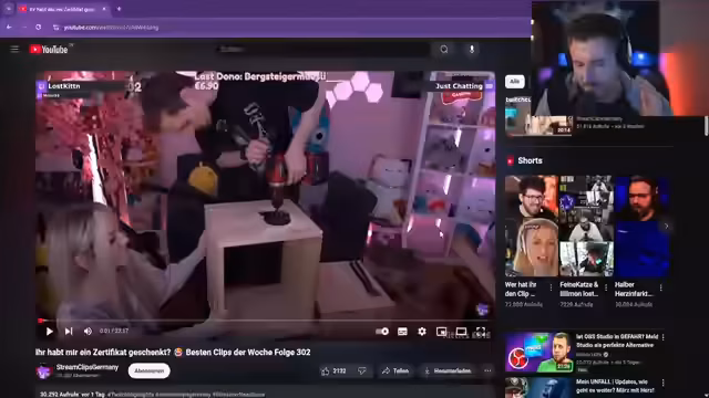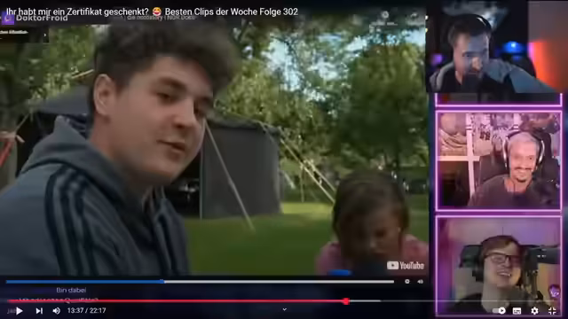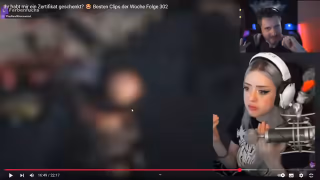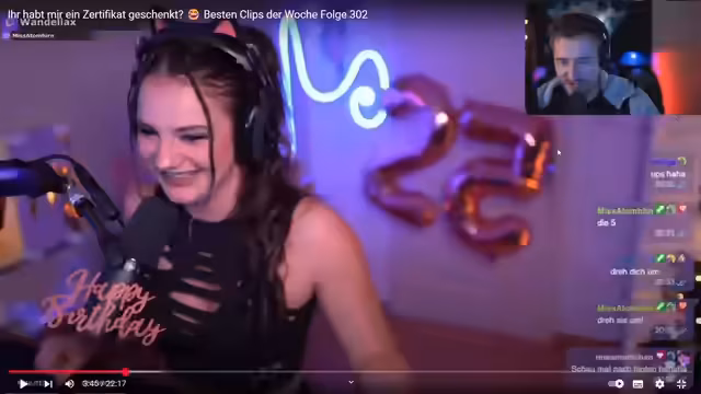 00:39:26Es wird die Frage aufgeworfen, ob schon mal jemand vom Streamer geträumt hat. Der Streamer erzählt eine Anekdote über eine Situation im Supermarkt, in der er ein Kind ausgelacht hätte, das hingefallen ist. Es wird darüber diskutiert, wie man in so einer Situation reagieren sollte. Es folgt ein Clip über ein Spiel namens "Girls-Bedroom", bei dem sich der Streamer erschreckt. Es wird ein Clip gezeigt, in dem jemand beschreibt, wie sie sich mit einem Föhn trockengelegt hat. Der Streamer fragt sich, was ein "re-artiges Wesen" ist und stellt fest, dass es sich um "rehartig" handelt. Es wird ein Clip gezeigt, in dem jemand seinen Geburtstagstream macht und die 5 falsch herum hält.