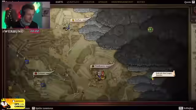 03:04:51Es wird die Aufgabe angenommen, Margarete die Nachricht zu überbringen. Es wird überlegt, ob Konrad bereits getötet wurde. Es wird beschlossen, Konrad zu bestehlen, bevor die Aufgabe fortgesetzt wird. Es werden verschiedene Gegenstände aus seinen Taschen gestohlen. Es wird geprüft, ob die Aufgabe markiert ist. Es wird sich auf den Weg gemacht, Margarete zu finden. Es wird erwähnt, dass ein Zuschauer einen Resub gegeben hat. Es wird überlegt, wo sich Margarete befinden könnte und es wird befürchtet, sie suchen zu müssen. Es wird gegessen und darauf geachtet, nicht aufzufallen, da zuvor Sachen geklaut wurden. Es wird das Pferd gerufen und überlegt, welche Sachen geklaut wurden, um sie zum Pferd zu bringen. Es wird ein Händler getroffen, der nicht bemerkt, dass er bestohlen wurde. Es wird versucht, dem Händler etwas zu verkaufen, aber er hat nicht genug Geld. Es wird sich gewaschen und überlegt, dem Händler seine Sachen wieder zu verkaufen, wenn er wieder Geld hat. Es wird nach Margarete gesucht.