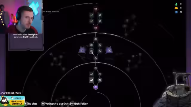 00:50:54Der Streamer zeigt einen detaillierten Überblick über die umfangreichen Talenten- und Relikt-Systeme in Rogue Loops. Es gibt über 30 verschiedene Relikte, die passive Boni oder aktive Fähigkeiten verleihen, wie z.B. das Erzeugen von Blitzgeistern oder das Heilen beim Betreten eines Raums. Das Talenten-System ermöglicht es, durch sammelbare Essenz permanente Verbesserungen zu aktivieren, von einer einfachen Gesundheitserhöhung bis hin zu drastischen Steigerungen des kritischen Schadens oder der Chance auf kritische Treffer, die bis zu 50% betragen können.