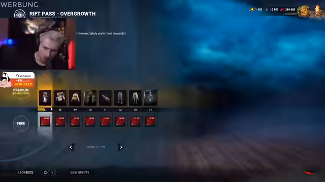 02:30:40Es wird der aktuelle Zustand des Chao-Shuffle beendet und eine neue Warteschlange für das normale Spiel eingeführt. Der Streamer merkt an, dass dies die Wartezeiten jedoch nicht verkürzt und mutmaßt, dass dies an der großen Beliebtheit des neuen Killers liegt. Die Quests der Woche werden erwähnt und eine Runde mit der Nurse angetreten.