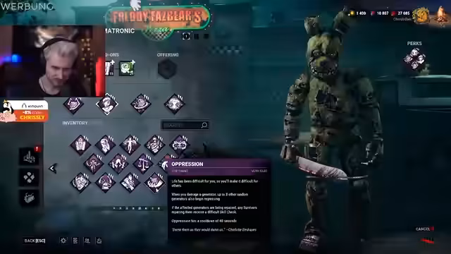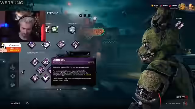 00:05:03Der Stream beginnt mit rockiger Hintergrundmusik und einer Begrüßung des Publikums. Der Streamer kündigt an, dass heute das neue Chapter von Dead by Daylight gespielt wird, das in Zusammenarbeit mit Five Nights at Freddy's (FNAF) entstanden ist. Er deutet an, dass der Titel des Chapters möglicherweise irreführend ist, da es ihm schon lange bekannt ist. Sein Hauptinteresse gilt jedoch nicht dem neuen FNAF-Killer, sondern der beschleunigten Skill-Funktion im Bloodweb, die er seit Jahren gefordert hatte.