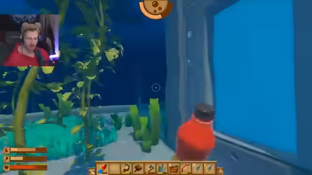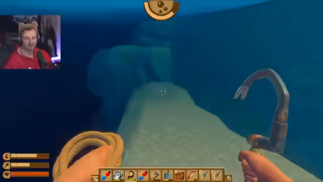 03:31:24Auf der Insel angekommen, beginnt der Streamer mit dem Tauchen und stößt auf ein wahres Ressourcenreichtum. Es werden Titanerz, Schätze und viele Anglerfische gefunden. Bei der Navigation durch eine sehr komplexe Höhlenlandschaft verliert er jedoch wiederholt die Orientierung. Die Sauerstoffvorräte reichen nur knapp aus, was zu ständigen Anspannungen führt. Die Jagd auf einen Hai namens Bruce wird zu einem wiederkehrenden und witzigen Motiv während der Erkundung.