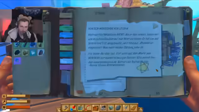 03:23:42Der Streamer erkundet ein mysteriöses Dorf, das an Woodstock 2.0 erinnert. Er findet Hinweise auf einen Anführer namens Olaf Wilkstrom, der die Bewohner ausgebeutet hat und angeblich Abweichler einsperrt. Der Streamer sammelt Gegenstände wie einen Gefängnisschlüssel und stößt auf Utopia-Journale, die ihm Hinweise auf seine Mission geben. Er ist auf der Suche nach Teilen eines Generalschlüssels, um die Bewohner zu befreien.