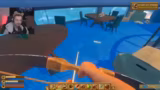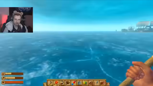01:32:18Die Fahrt zur neuen Insel ist von Hindernissen geprägt. Das Floss gerät fest und muss manövriert werden, was mehr Kraft und Koordination erfordert. Dabei kommt es zu technischen Pannen, wie einem 'Discord-Bug', der die Kommunikation unterbricht. Das Ziel bleibt die Erkundung einer 'schüchternen Insel', um Ressourcen wie Holz, Kupfer und Seetang zu sammeln.