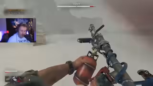 03:07:53Der finale Bosskampf gegen den Baron beginnt. Dieser zeigt zwei Phasen und besondere Fähigkeiten, einschließlich eines feuerspeienden Angriffs. Der Spieler wechselt zwischen Waffen, nutzt taktische Manöver wie Ausweichen, und versucht, den Boss zu schwächen. Der Kampf ist intensiv, erfordert ständiges Nachladen, Heilen und strategisches Vorgehen, um diephysischen Angriffe des Barons abzuwehren.
