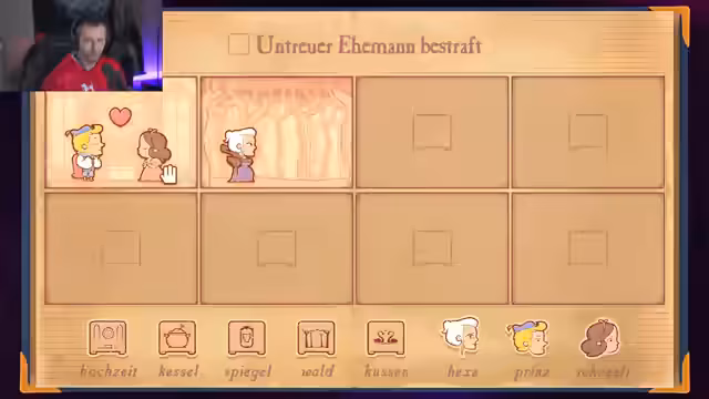 01:33:10Kapitel 5 'Schönheit' wird als moderne Version von Schneewittchen erarbeitet. Es geht um die Hexe, die Schönheit und den Prinzen, mit Verwandlungen (Frosch/Hexe), Flüchen und unerwiderten Liebesbanden. Der Streamer experimentiert mit der Reihenfolge von Ereignissen wie 'verzaubern', 'Küsse' und 'undankbar sein', um eine kohärente Handlung zu schaffen. Kapitel 6 'Kronenintrige' behandelt Entführung, Rache und Thronraub. Charaktere wie der Baron und die Königin sind verwickelt; Pläne beinhalten Entführung, Kronenstehlen, Rettung und mögliche Hinrichtungen, wobei die Logik von 'Thronräuber' und 'König sein' genau geplant wird.