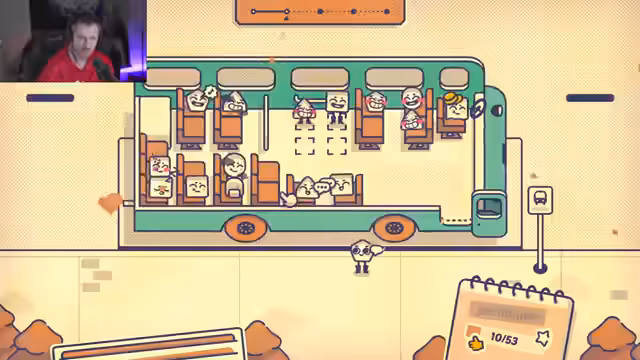 03:55:16Nach der abgeschlossenen, makaberen Geschichte wechselt der Streamer das Genre komplett und startet das indie Spiel 'Is this seat taken?'. Die Aufgabe besteht darin, Fahrgäste in einem Bus so zu platzieren, dass alle ihre spezifischen Wünsche erfüllt werden, wie zum Beispiel einen Fensterplatz oder Abstand von Kindern. Der Streamer beginnt die ersten Level in Barcelona und findet schnell einen Rhythmus, um die manchmal kniffligen Sitzplatzanforderungen zu meistern.