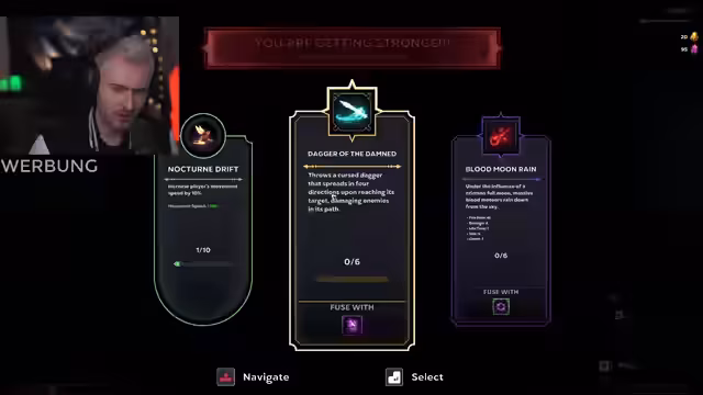02:12:44Der Stream konzentriert sich auf das Fortschreiten in einem Spiel, bei dem der Fokus auf der Charakterentwicklung und dem Sammeln von Items liegt. Der Spieler erkundet verschiedene Fähigkeiten wie Heilung, Bewegungsgeschwindigkeit und Angriffskraft, um seine Spielweise zu optimieren. Die Strategie besteht darin, einen perfekten Mittelweg zu finden, um den Schaden zu minimieren, während alle Gegner und Ressourcen gelootet werden. Entscheidungen über neue Fähigkeiten werden getroffen, um den Charakter stärker zu machen, wobei Tempo als entscheidender Faktor hervorgehoben wird.
