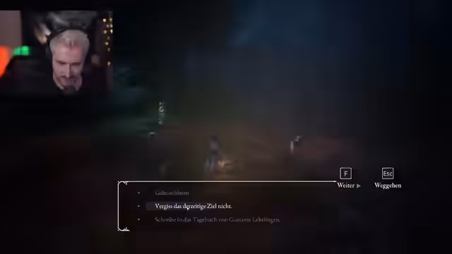 01:16:16Der Streamer vertieft sich in die komplexe Welt von Claire Obscure, insbesondere in die Konzepte der Expedition und der Gesellschaft. Es werden dunkle Themen angesprochen, darunter das Sterben älterer Menschen und die Hoffnung auf Rettung durch die Expedition. Er analysiert die Charaktere und ihre Motivationen, wie Gustavs Wunsch, an der Expedition teilzunehmen, und Sophies Akzeptanz ihres Schicksals. Der Streamer zeigt sich berührt von der emotionalen Tiefe und den ethischen Fragen des Spiels, während er weiter durch die Welt navigiert und interactive Elemente erkundet.