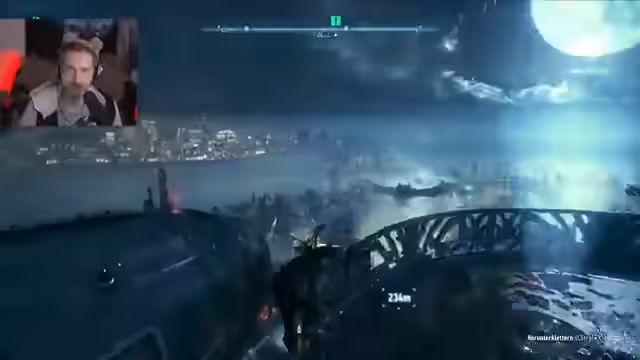 02:45:04Der Streamer spielt das Spiel Batman: Arkham Knight und übernimmt die Rolle von Nightwing. Er kämpft sich durch Gotham City, wobei er sich mit Gegnern herumärgert. Die Kämpfe verlaufen chaotisch, der Streamer ärgert sich über die unfaire KI und die Umstände, z.B. über die unberechenbaren Gegner und die Tatsache, dass er immer angegriffen wird. Er nutzt verschiedene Moves wie Uppercuts, Ausweichen und Spezialattacken, aber die Situation bleibt hektisch und er erleidet viel Schaden.